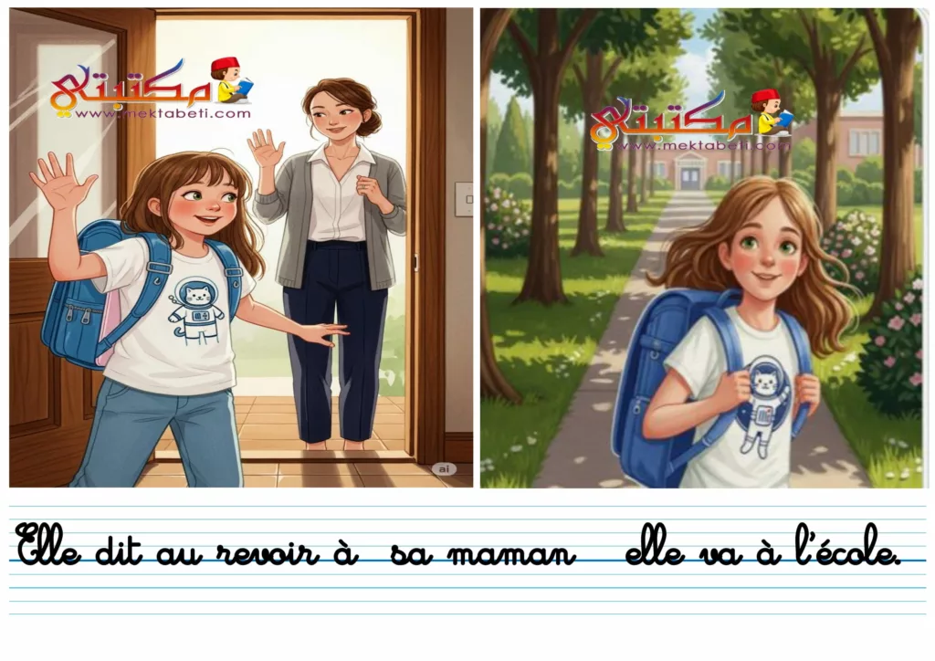 Elle dit au revoir à  sa maman   elle va à l’école.