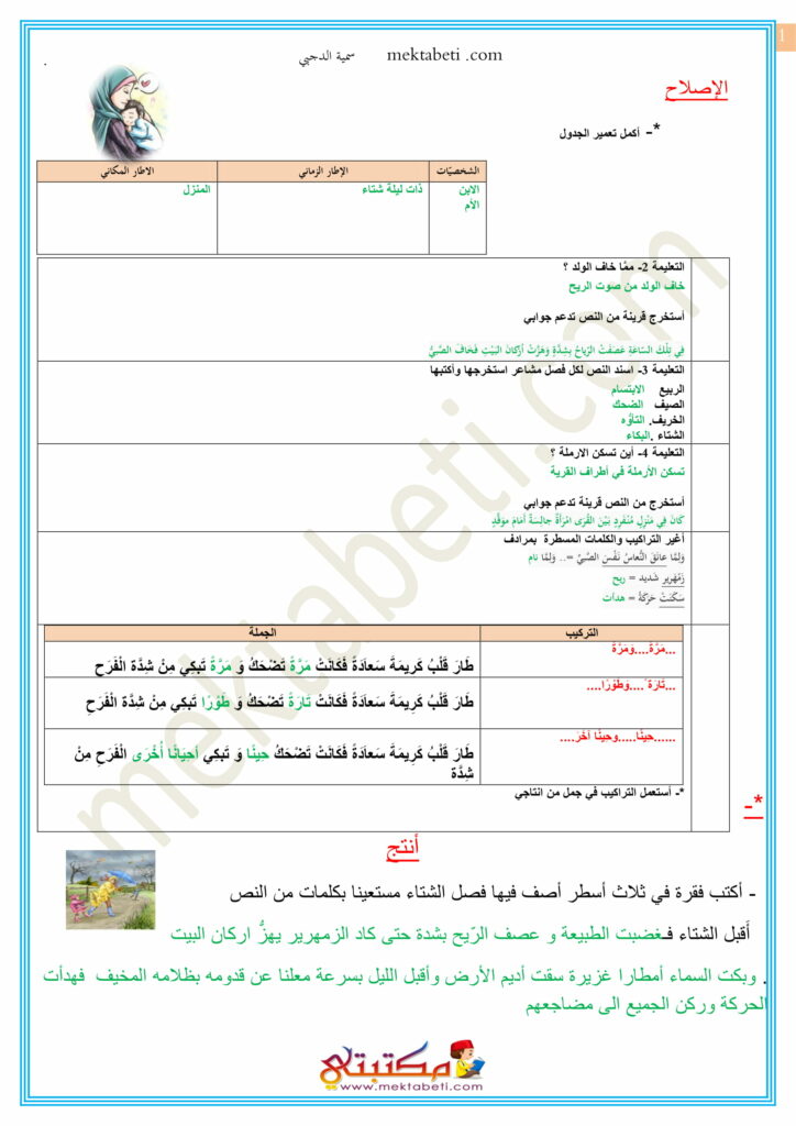 إصلاح قراءة السنة الثالثة نص الأرملة وابنها
