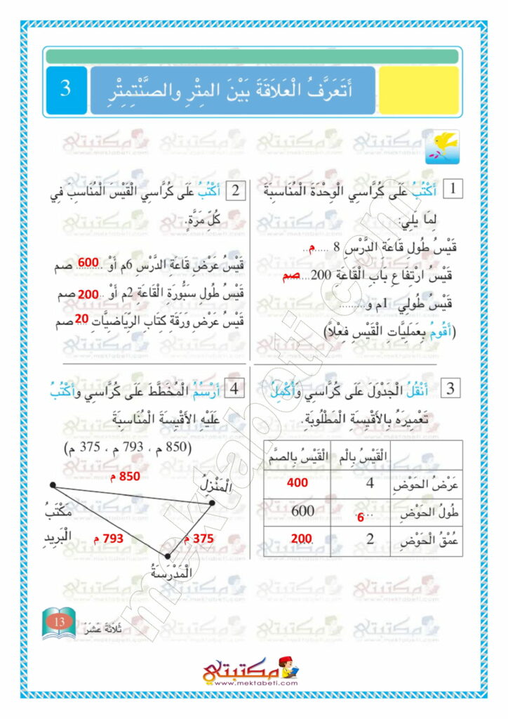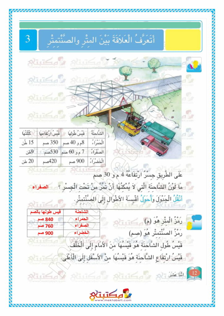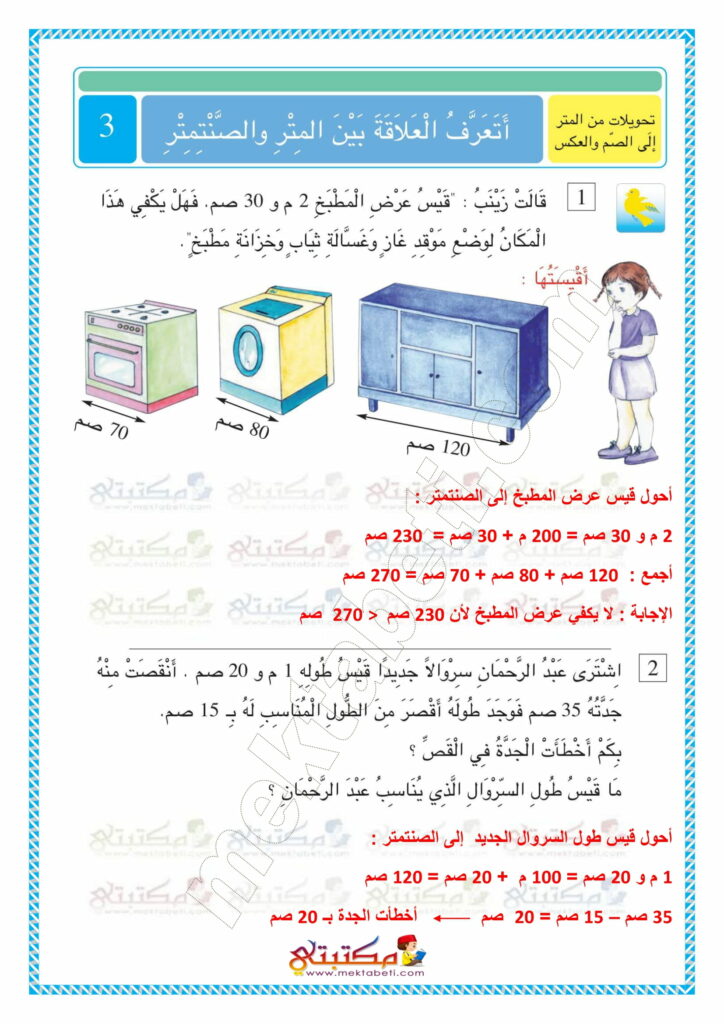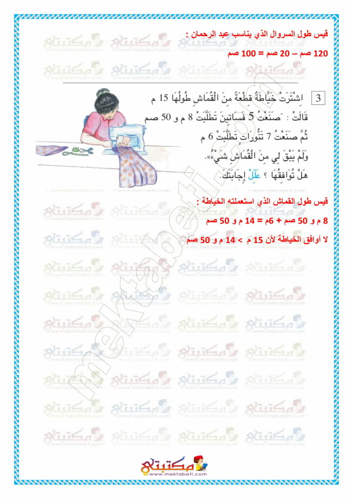 إصلاح كتاب الرياضيات السنة الثالثة أتعرف العلاقة بين المتر والصنتمتر