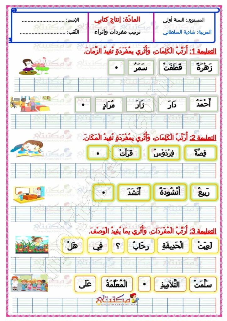 إنتاج كتابي السنة الأولى ترتيب مفردات و إثراء