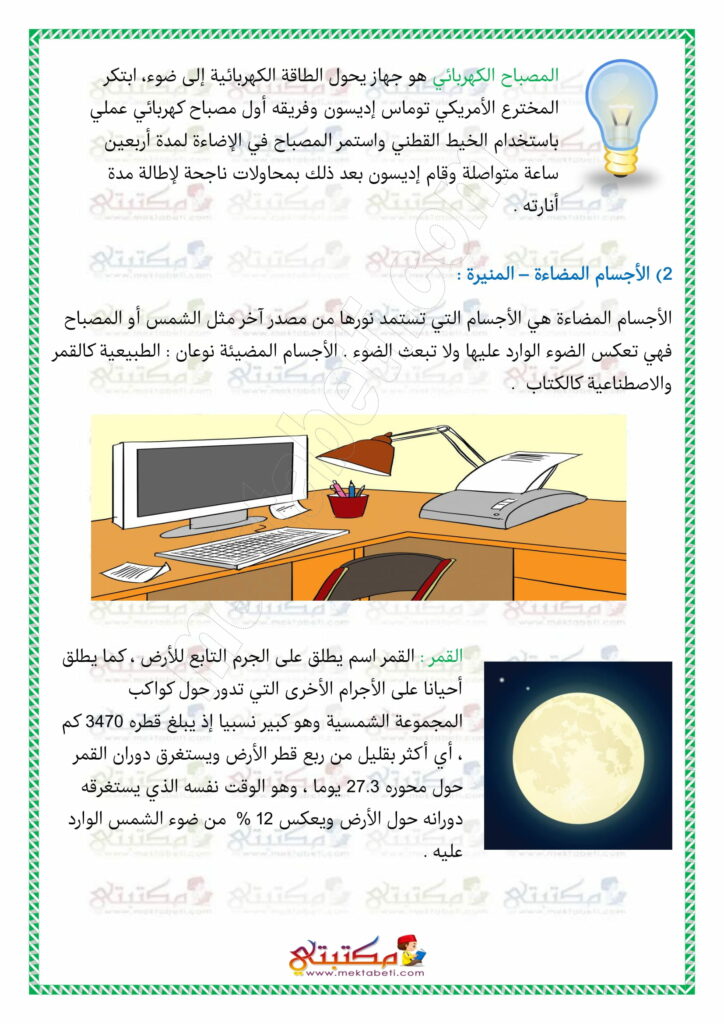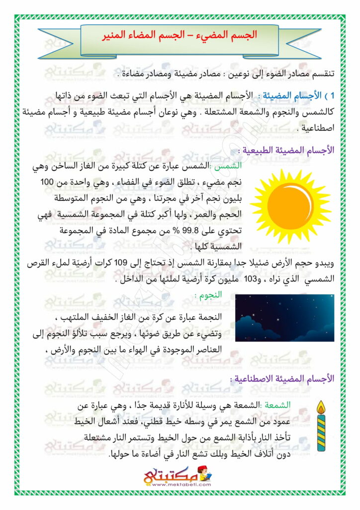 إيقاظ علمي السنة الخامسة الجسم المضيء – الجسم المضاء المنير