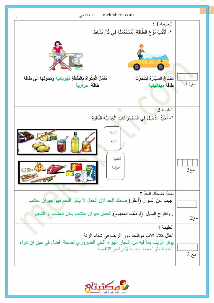 اختبار الإيقاظ العلمي السنة الثالثة الثلاثي الثاني