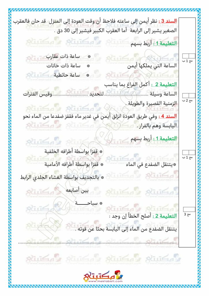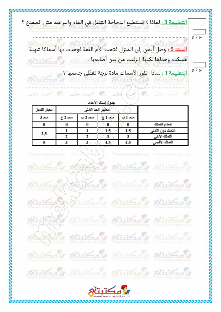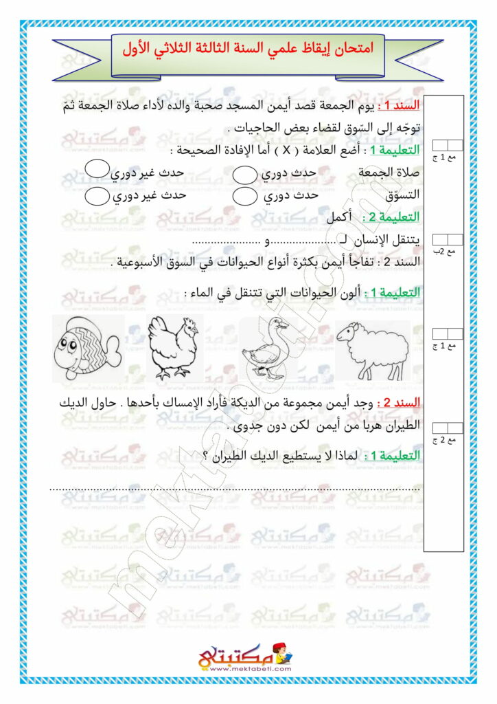 امتحان إيقاظ علمي السنة الثالثة الثلاثي الأول