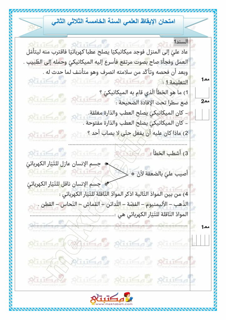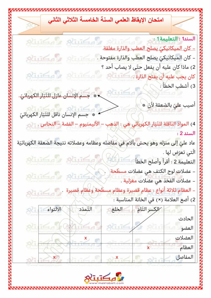 امتحان إيقاظ علمي السنة الخامسة الثلاثي الثاني مع الإصلاح