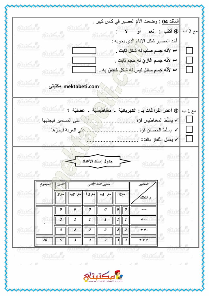 تقييم في مادة الإيقاظ العلمي السنة الثانية السداسي الثاني
