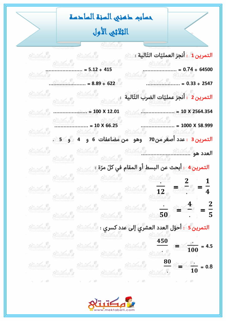 - أساسي / الثلاثي الأول / امتحانات / امتحانات / سادسة إبتدائي / علوم